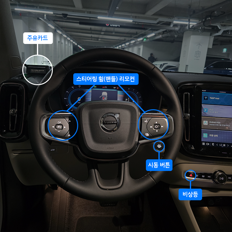 시동 버튼은 핸들 우측 뒤편에 위치합니다.