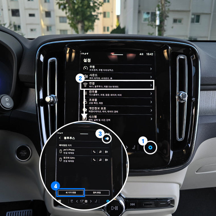 2. 핸드폰 블루투스 설정에서 예약하신 차량 이름을 선택하여 블루투스를 연결해 주세요.
