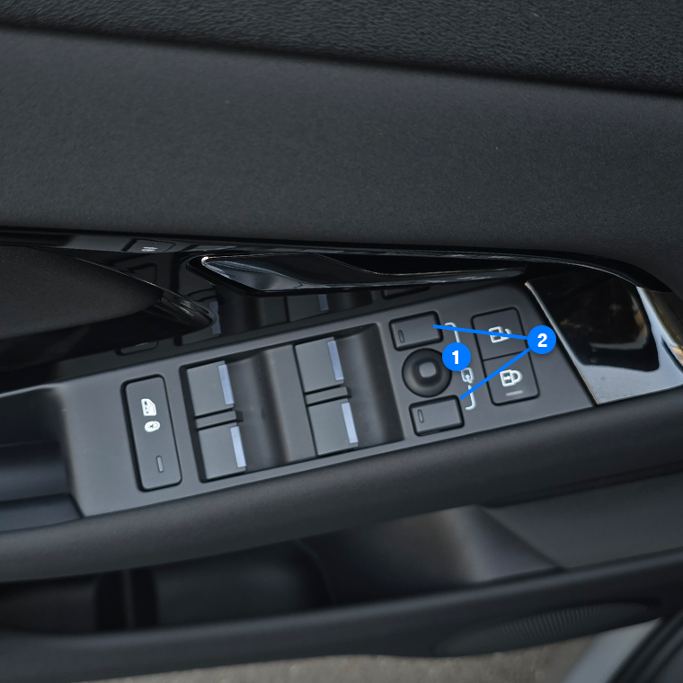 ① 사이드 미러를 접거나 펼칠 수 있으며, 사이드 미러의 위치를 조절 할 수 있습니다.