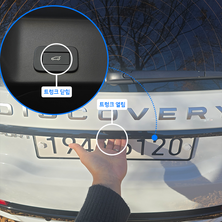 차량 뒤 번호판 위에 위치한 버튼을 눌러 트렁크를 엽니다.